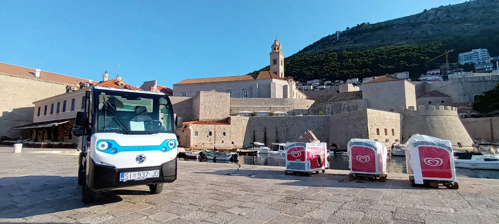 Usluga opskrbe unutar Povijesne jezgre Grada Dubrovnika posebnim vozilima.